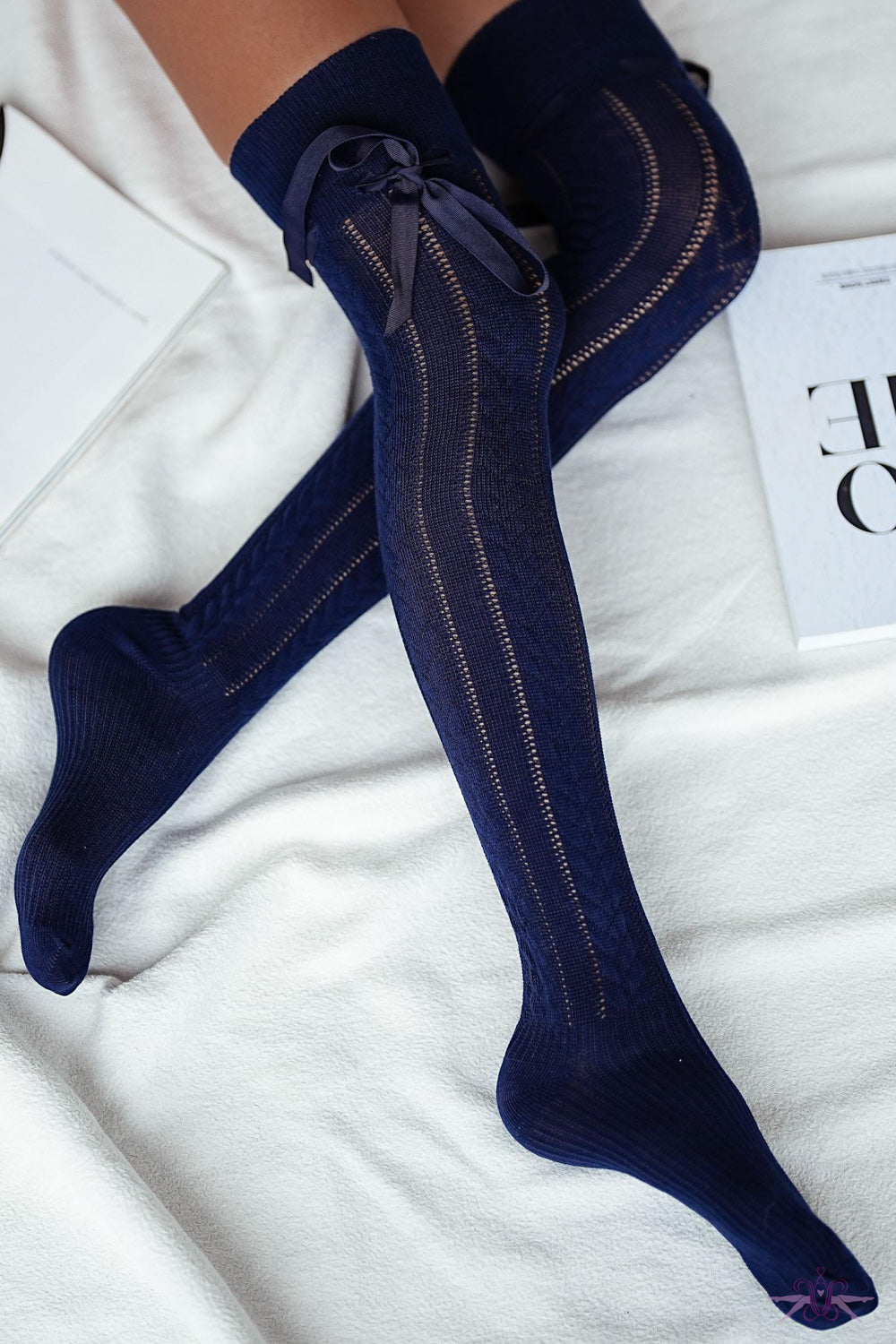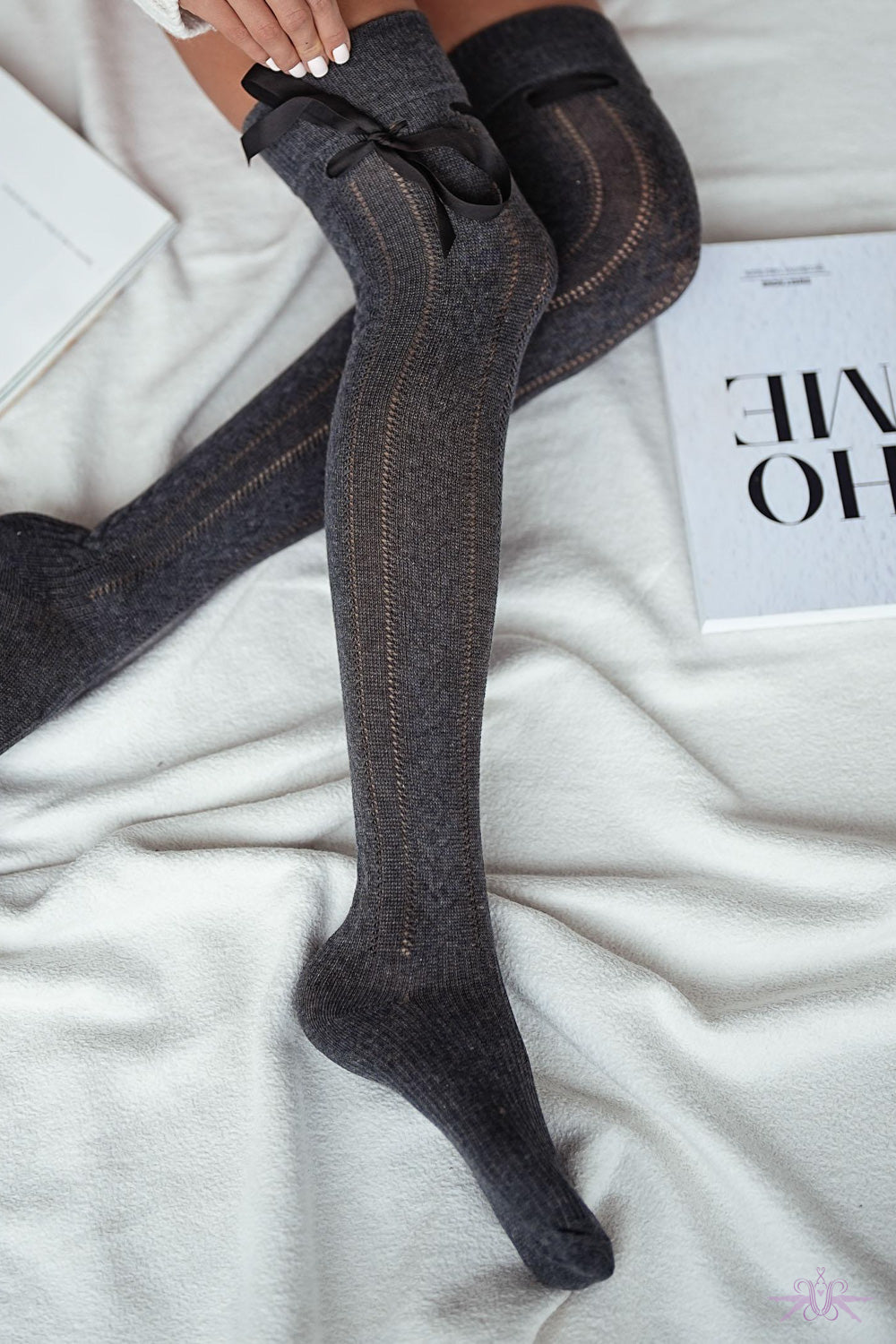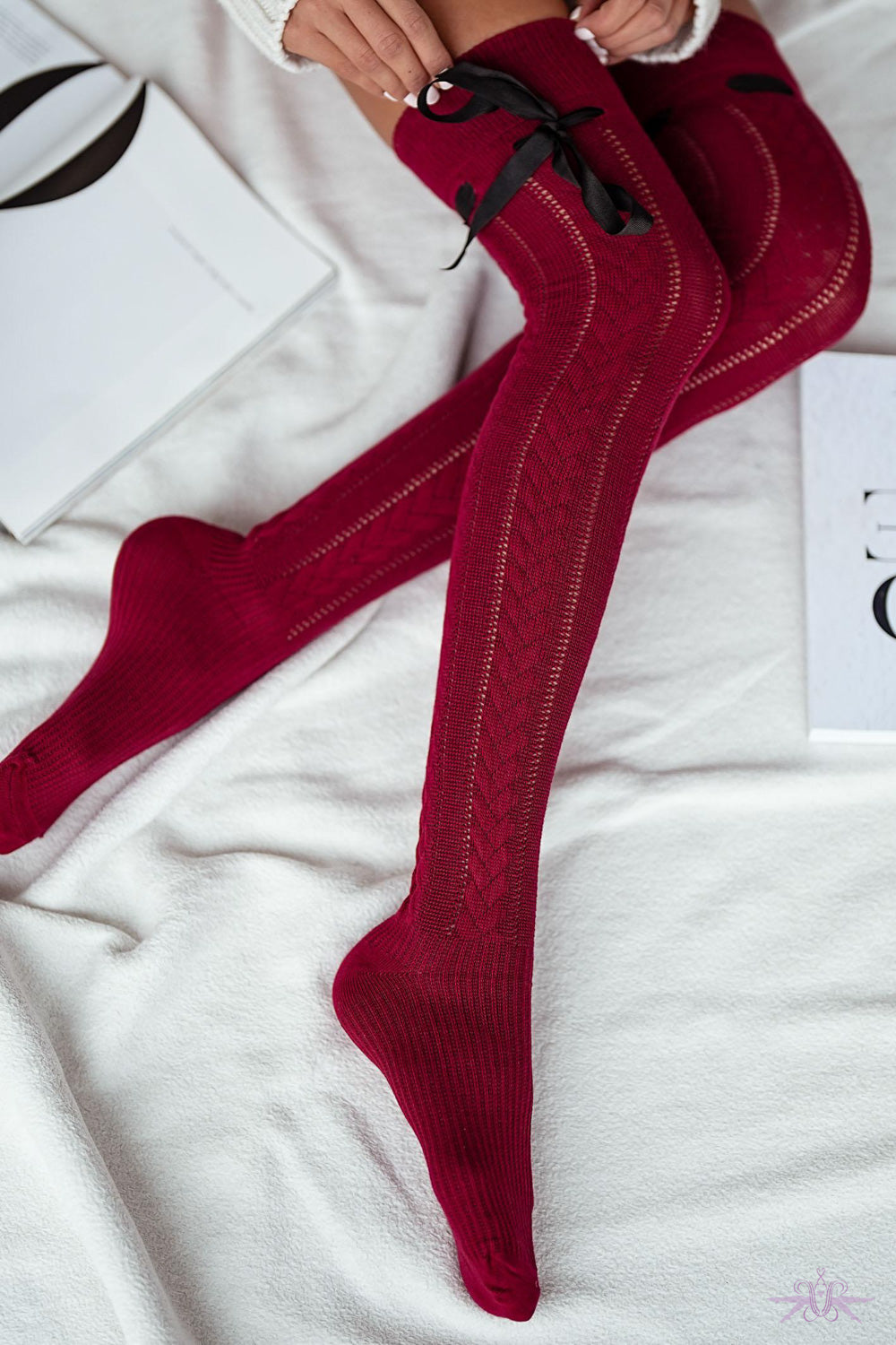 Elevate your confidence with the Marilyn Openwork over-the-knee socks, where audacious style meets refined sophistication. These striking over-the-knee socks feature an intricate openwork pattern that commands attention, while a luxurious grosgrain ribbon cinches elegantly around the thigh for an undeniably sensual finish. Perfect for those bold enough to embrace their femininity with flair, these statement pieces transform any outfit into an expression of daring elegance. Whether layered beneath tailored separates or showcased with intention, the Marilyn delivers the kind of understated confidence that turns heads.