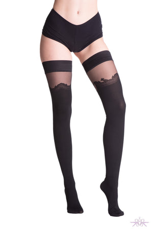A striking hold up with a striking criss cross design to the rear. The front of the leg is opaque and the rear reveals sheer with the design. This is definitely a hold up that will excite and turn heads. The smooth stay up band ensures they will be invisible under clothing.